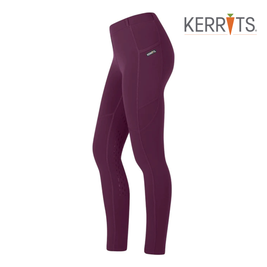 These versatile tights use high-tech fabric that works to keep kids comfy year-round. Cutting-edge Ice Fil® technology wicks and cools while providing UPF+50 sun protection. Strategically distributed Anti-Slip Kerrit Sticks™ along the inner leg and seat grip, breathe, and stretch for added confidence. Handy side pockets for lip stuff and horse treats.