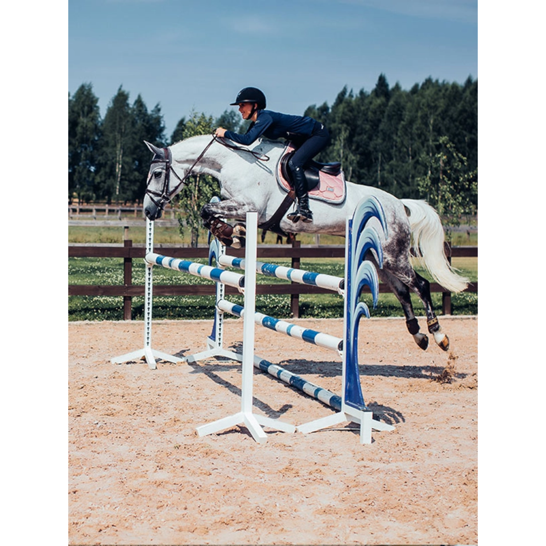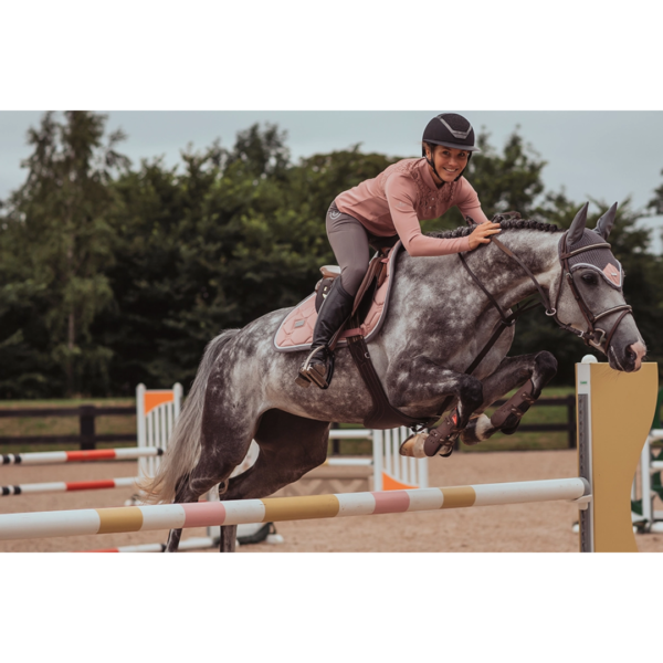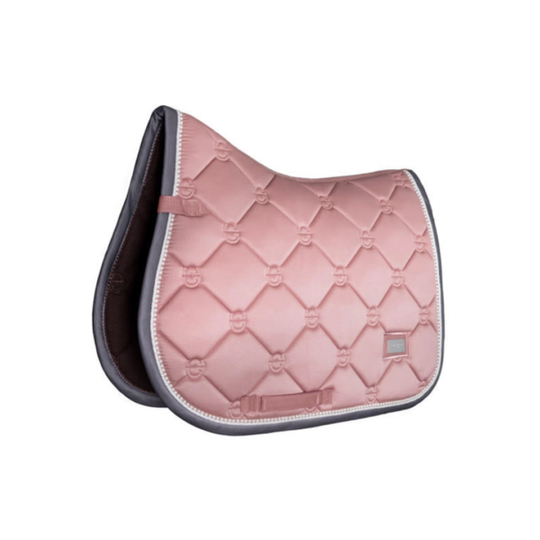 Elegant saddle pad in pink with white and grey details. Designed with beautiful pearls along the edge. Decorated with the Equestrian Stockholm badge in silver. The material is treated with High IQ cool comfort which gives the saddle pad quick dry and moisture wicking abilities. This helps your horse stay dry and fresh longer. Style with other pieces from our Pink collection for a head-to-toe stylish look.