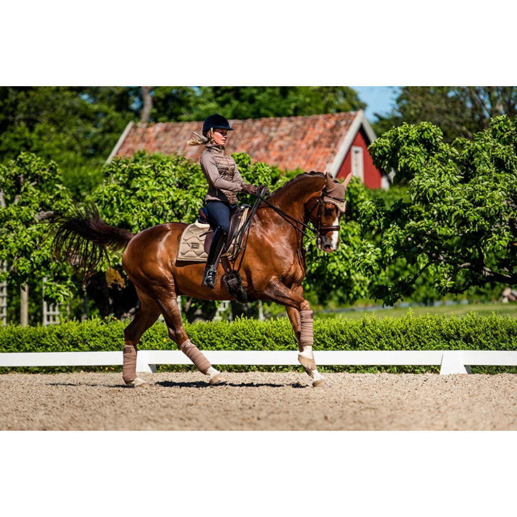 Gorgeous quality polo wraps in a luxurious champagne beige design with golden details. Style with the saddle pad from our Champagne collection to complete the elegant look. Decorated with the stylish ES badge. Fleece bandages are sold in sets of four.